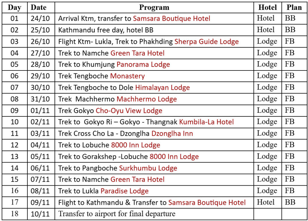 Si svolgerà dal 23 Ottobre al 10 Novembre 2025 in quella che in Nepal è la stagione post-monsonica, che offre giornate di tempo favorevole e poco o assente innevamento nei passaggi sui passi più alti.